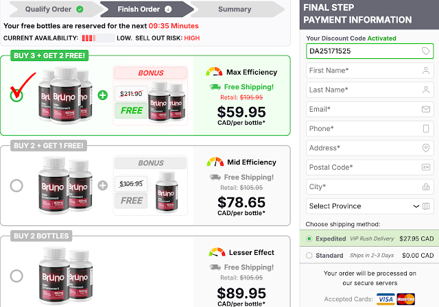 Bruno Male Enhancement Canada Online supplements are typically sold online through the brand's official website, selected eCommerce platforms, and sometimes in health supplement stores. For safety: